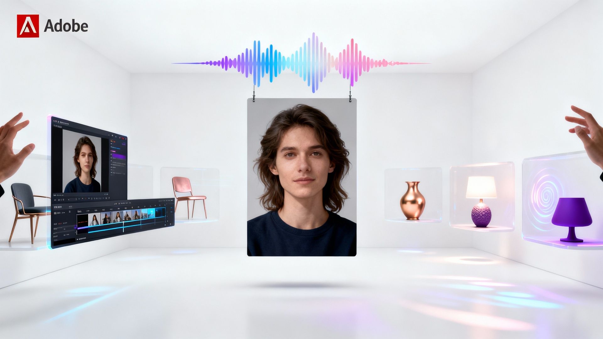 Outils de génération d'éclairage et d'audio : « Project Light Touch » permet de modifier la direction de l'éclairage et des ombres sur les photos. « Project Clean Take » modifie le ton de la voix, remplace des mots et isole l'audio de fond.